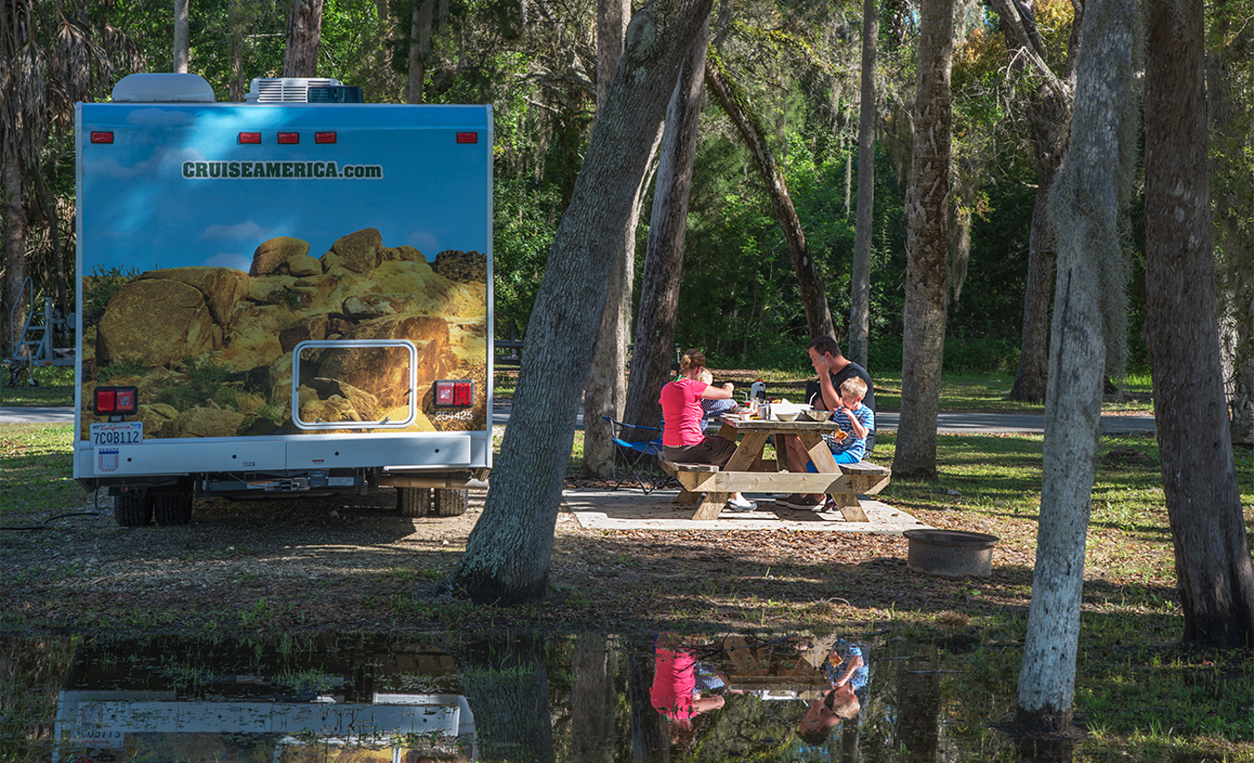 Campers can take their RV rental in Florida to the park’s 139-site campground, which comes complete with electrical and water hookups. Each site also has a grill and fire ring for those late-night gatherings.